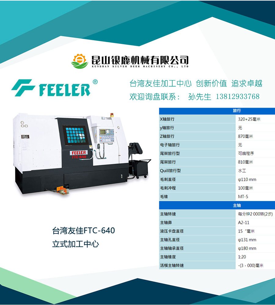 臺(tái)灣友嘉FTC-640車床,采用整體斜背車床、剛性好;A2-11主軸鼻端、主軸配2段式變速齒輪箱傳動(dòng)、主軸轉(zhuǎn)速2000rpm、主軸功率22/26KW;15寸卡盤(pán)、棒材通孔直徑117.5mm;配可程式尾座;最大切削直徑640mm,特別適合大型零件加工,例如鋁合金輪轂等。