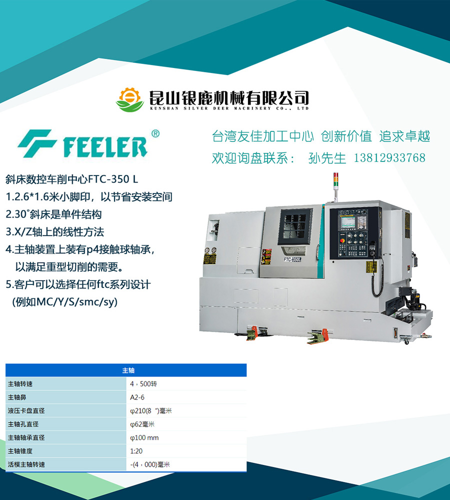 臺(tái)灣友嘉FTC-350L斜床身8寸卡盤數(shù)控車床一級(jí)代理,采用30度斜床身一體式鑄件設(shè)計(jì),導(dǎo)軌跨距大,剛性好,精度穩(wěn)定。標(biāo)配發(fā)那科系統(tǒng),a電機(jī)。詳細(xì)情況歡迎垂詢!