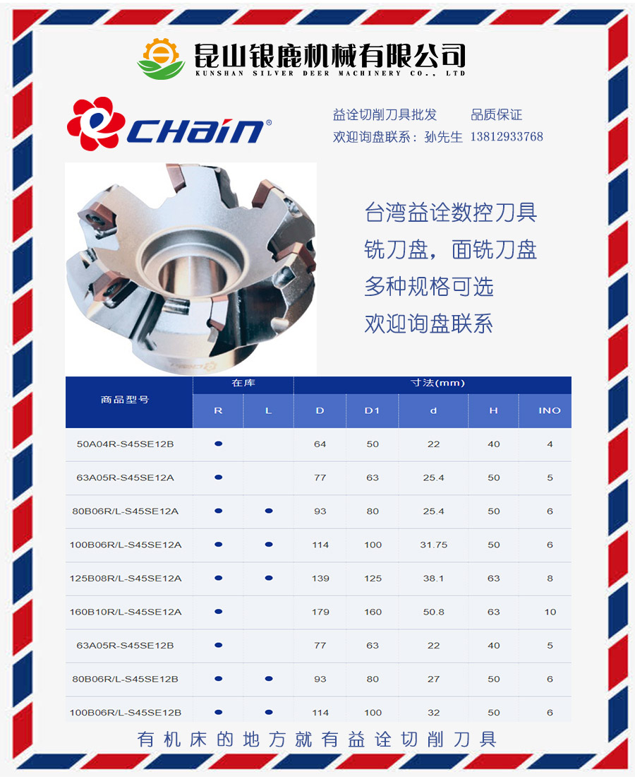 臺灣益詮重切削銑刀盤,本公司備有充足與齊全的庫存,希望以我們數(shù)十年的技術(shù)與經(jīng)驗,提供物美價廉的服務(wù)給各位使用者。